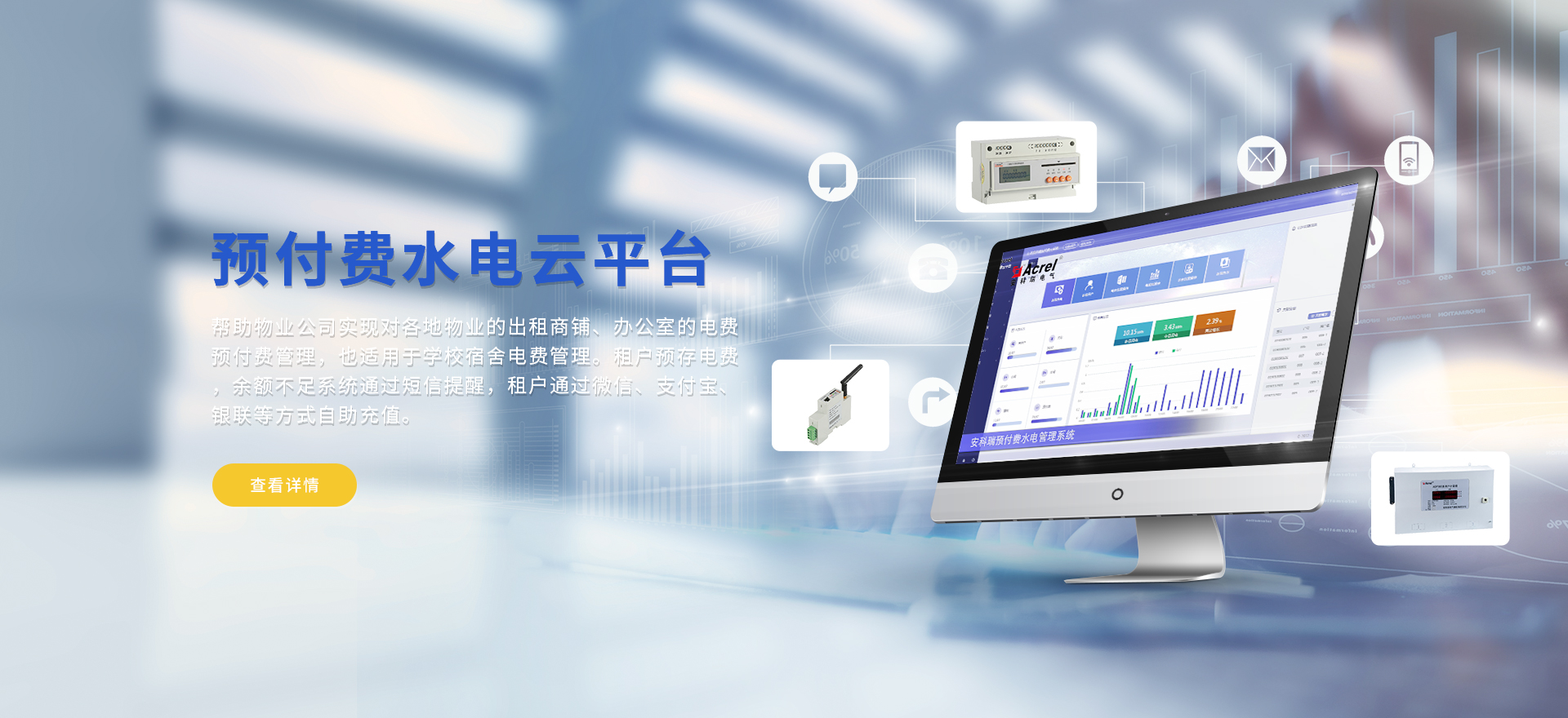 安科瑞提供的解決方案包括Acrel-EIoT能源物聯(lián)網(wǎng)云平臺變電所運維云平臺安全用電管理云平臺環(huán)保用電監(jiān)管云平臺智慧消防云平臺能源管理云平臺、工業(yè)企業(yè)能源管控平臺、遠程預付費云平臺餐飲油煙監(jiān)管云平臺電動汽車/電瓶車充電樁收費管理云平臺、電力監(jiān)控/無線測溫系統(tǒng)、電能質量治理系統(tǒng)、電氣火災監(jiān)控系統(tǒng)消防設備電源監(jiān)控系統(tǒng)防火門監(jiān)控系統(tǒng)應急照明和疏散指示系統(tǒng)、智能照明控制系統(tǒng)、醫(yī)用隔離電源絕緣監(jiān)測系統(tǒng)等,幫助用戶實現(xiàn)能源智能化、可視化、精細化管理,提高用能效率和用能安全,為企業(yè)節(jié)能降耗和實現(xiàn)能源數(shù)字化建設提供數(shù)據(jù)服務。
